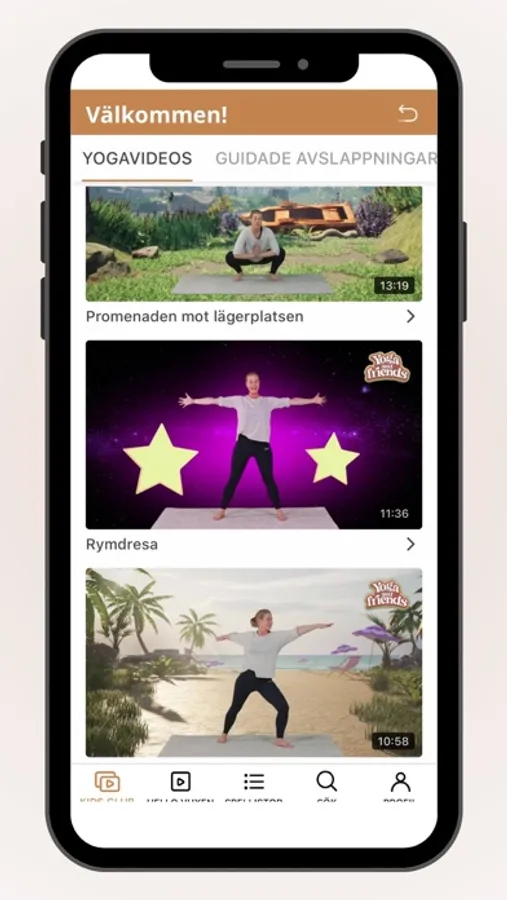 Med hjälp av magiska animerade yogavideos, guidade avslappningar/ Sagonidras, andningsövningar och andra kreativa tips gör vi det kul för barnet att lära sig om yogans superkraft och samtidigt skapa hälsosam rörelse och återhämtning.