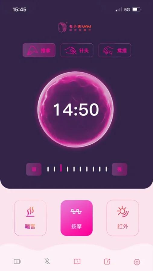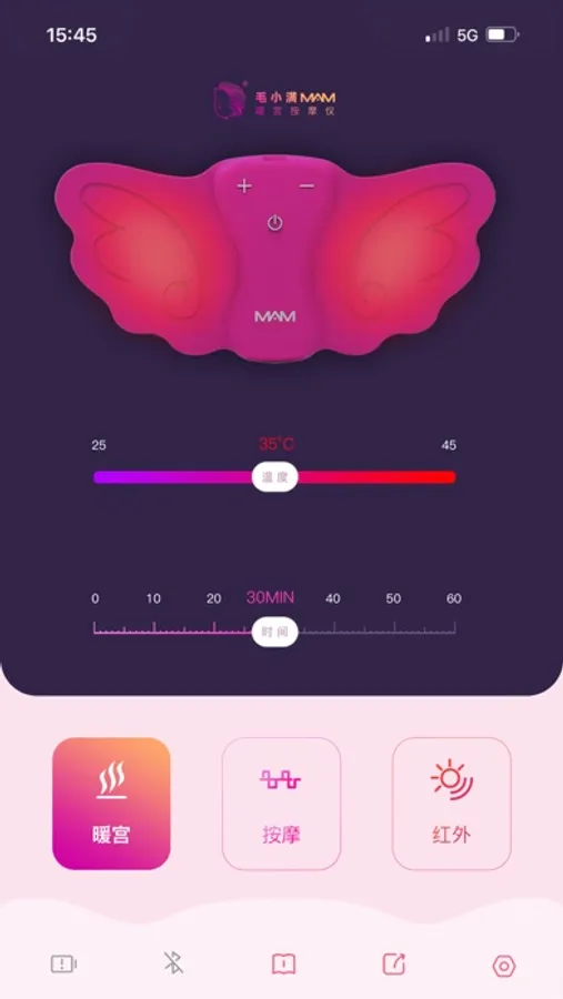 暧宫贴APP是一款专业的经期护理应用,APP与暖宫贴使用蓝牙连接,打开APP即可体验热敷、光疗、按摩三大功能,同时用户可根据自身喜好切换按摩模式,亦可依据自身痛经程度调节按摩力度,为您经期保驾护航,平稳度过。