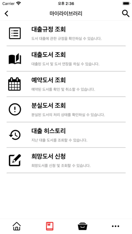 충북도립대학교 학술정보원의 도서 정보 조회 및 대출정보, 희망도서를 신청 할 수 있는 아이폰용 모바일 어플리케이션 입니다.