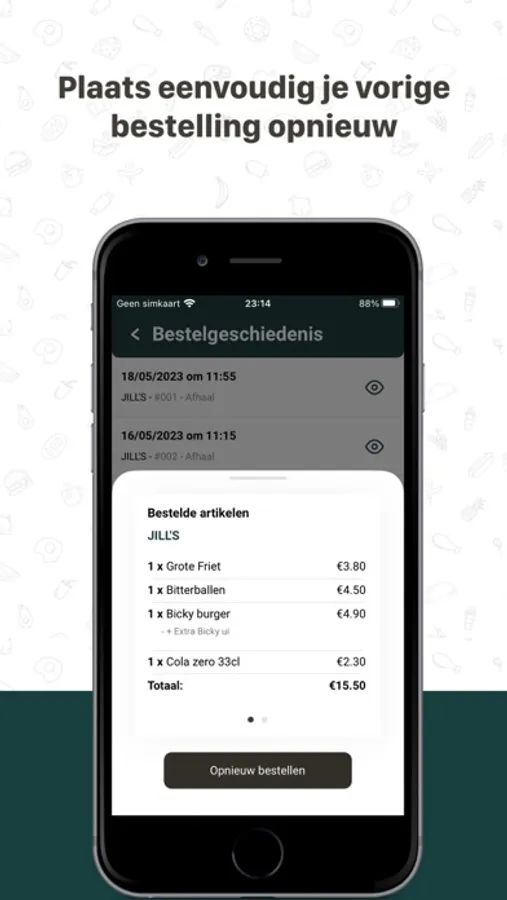 Via de favorieten functie of je bestelgeschiedenis ben je slechts enkele vingerdrukken verwijderd van een nieuwe bestelling. Echt handig!