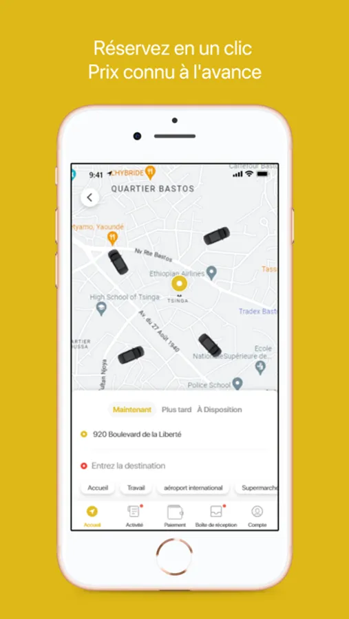 • Saisissez vos points de départ et d’arrivée, choisissez votre type de véhicule et estimez le prix de votre course.