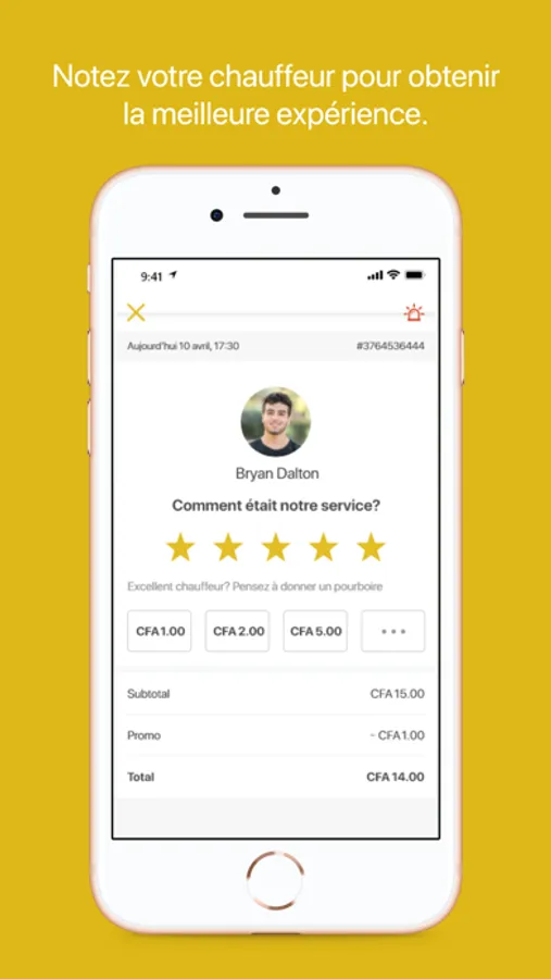 • Une fois la réservation effectuée, consultez les informations et l’indice de satisfaction de votre chauffeur.