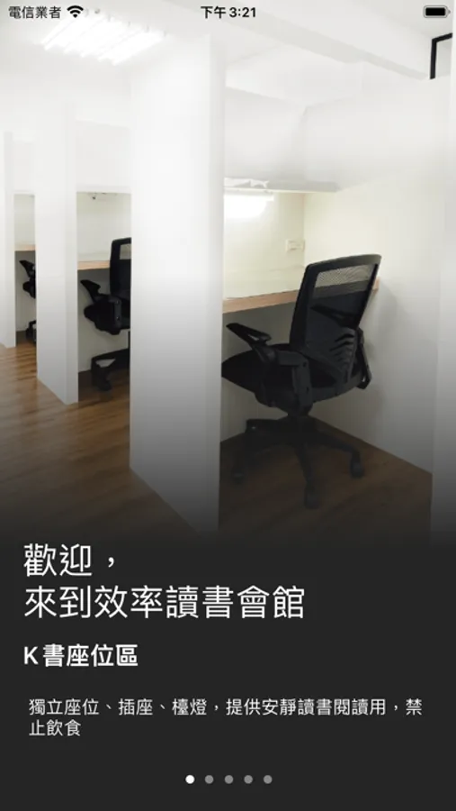 "本場館為讀書自修空間,提供舒適明亮的閱讀空間,專為有國考、大考、月考、會考、學測等大型考試需求的考生量身打造,採用一人一座位,每個座位獨立區分,寬敞安靜,配備獨立插座、獨立檯燈、高級座椅。
