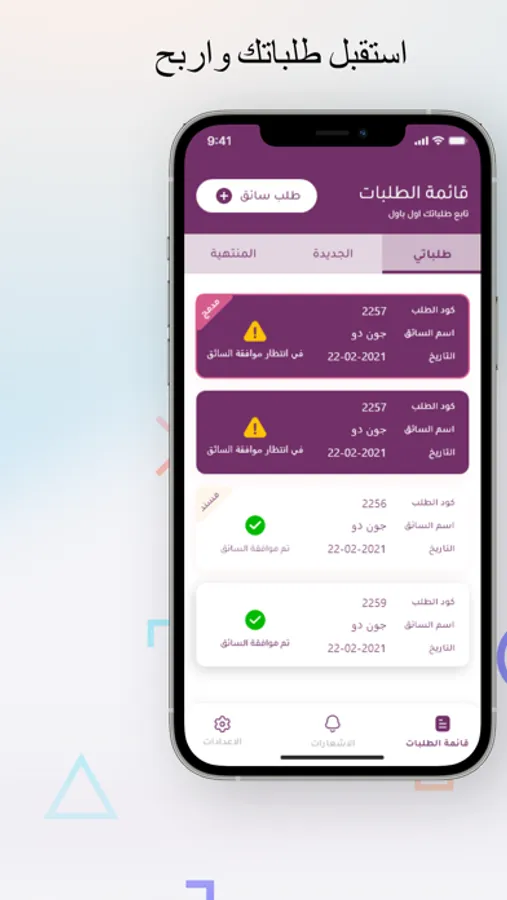 تطبيق ع الطلب الخاص بالسائقين ، لإدارة الطلبات ، ومتابعة توصيلها من المتاجر المختلفة