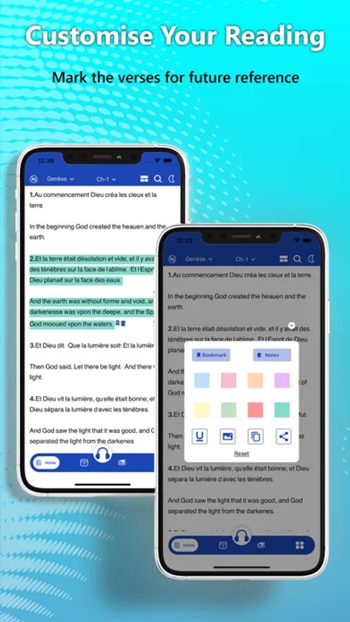 With a wide range of features, the French Dual language Bible provides a personalised Bible study experience. Whether you're looking to deepen your understanding of the Bible or simply to read on the go, our bilingual Bible is the perfect choice. Overall, the French-English Bible is an essential tool for anyone who wants to engage with the Bible in a meaningful and more convenient way.