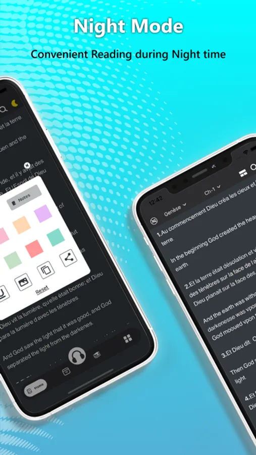 # Night mode: Night reading mode to facilitate reading the Bible at night.