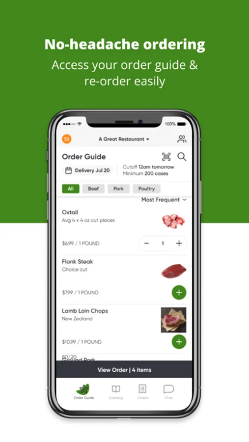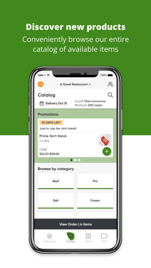 Our mobile app lets you search our complete product catalog, manage and update your ordering guide, and buy what you need at the moment you need it. It’s part of our commitment to giving you an ordering experience you’ll love.