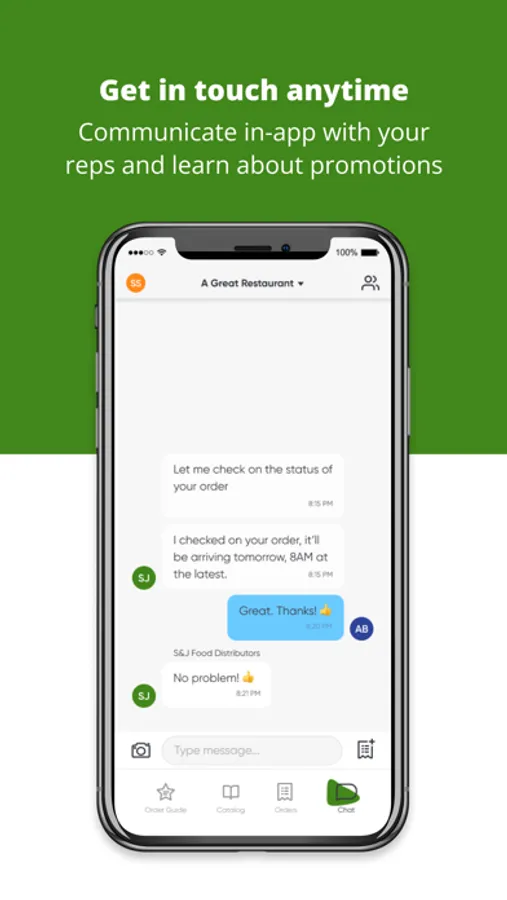 - Get in touch anytime: communicate directly with your S&J Foods rep in the app