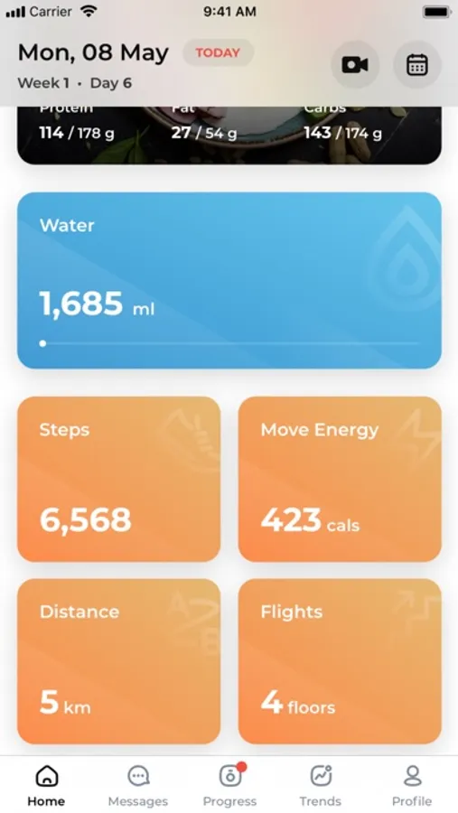 The app integrates with Apple Health to show your daily activity - distance, steps, active energy, and flights to help you better achieve your goals.