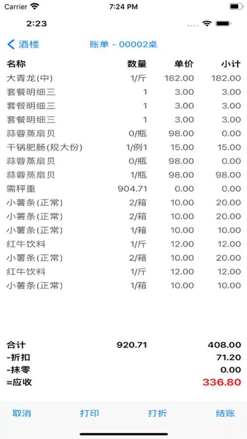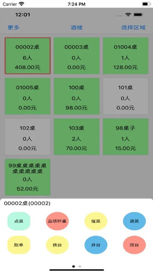 1. 支持点菜,品项秤重,催菜,退菜,账单,换台,并台,改台,起菜,撤台,结账功能