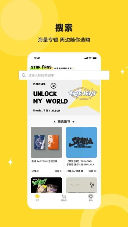 StarFans是一款主为粉丝们打造的粉丝互动电商平台,APP内汇集国内及海外明星的正品官方周边,提供最方便快捷购物体验,关注艺人动态,获得同款好物!