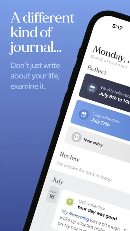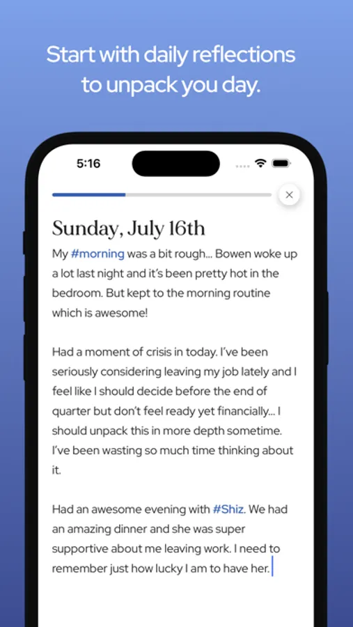 Living in a remote world, every day can begin to feel the same. It's time to break free from the monotony and see the progress in your life. Journaling is an excellent way to counter this feeling, but most journaling practices merely involve getting thoughts out of your head. Rejournal takes a giant leap forward by helping you not only capture your thoughts but also effectively process them.
