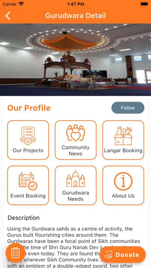 6. Donate: Support the community by making online donations through the app. Contribute to the Gurudwara's ongoing projects, maintenance, and community services. Your donations play a vital role in sustaining and enhancing the Gurudwara's operations.