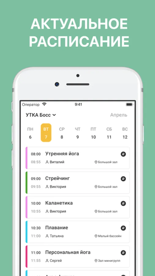 - запись на тренировки и процедуры