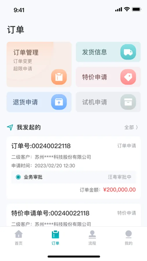 (4)订单审批:添加经销商订单变更和客户超限申请给业务员进行审批