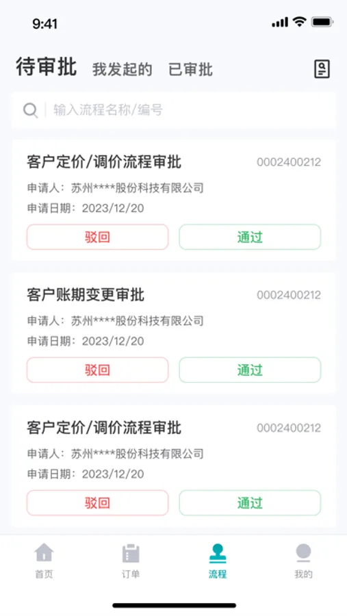 流程中心 业务端包括(待审核、已审核、我发起的、以及我的流程) 经销商端(我的流程)