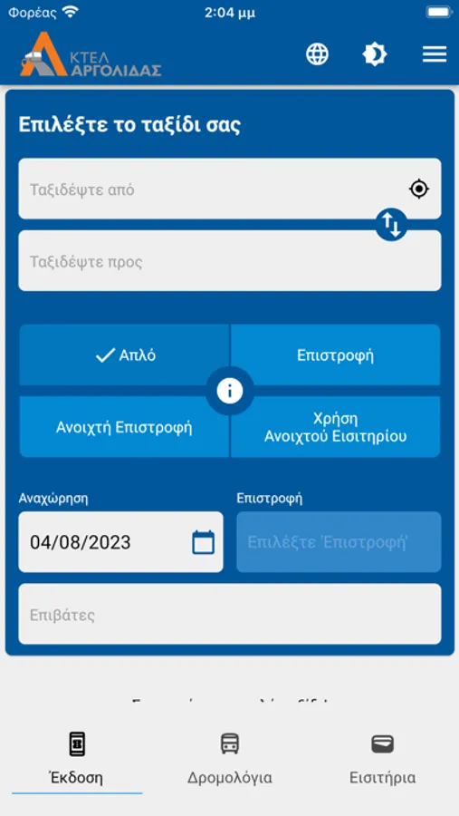 Application for issuing tickets and informing the public about the arrivals and departures of the long-distance bus services.