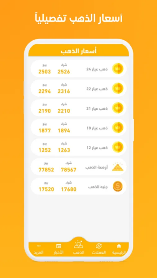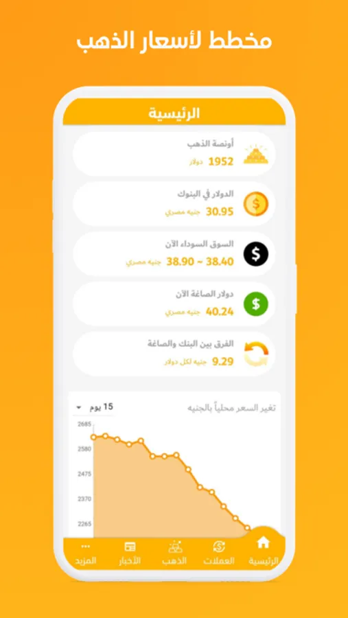 يساعدك تطبيق اسعار الذهب والدولار اليوم فى مصر على معرفة اسعار الذهب فى مصر بالجنيه المصرى. كما يساعدك على معرفة متوسط سعر الدولار في السوق