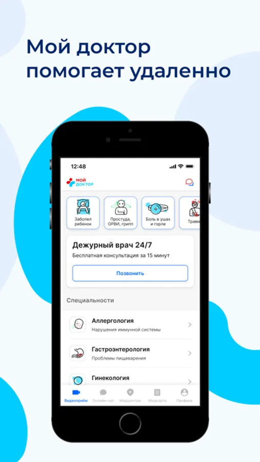 Опытный дежурный врач свяжется с вами в течение 3-х минут, проведёт осмотр по видеосвязи, задаст вопросы и даст рекомендации по выбору врача.