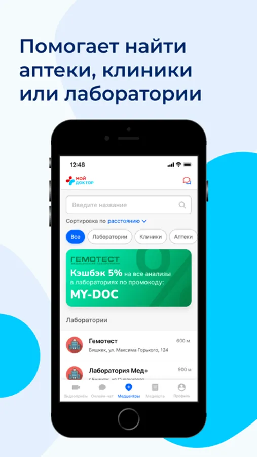 — Находите аптеки, лаборатории по адресу, геолокации, названию