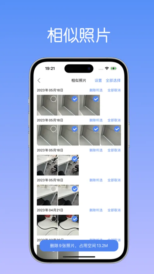 4.找出相似照片,快速删除,每次为了抓拍经典瞬间,都会拍好多照片,这些90%都是可以删的;