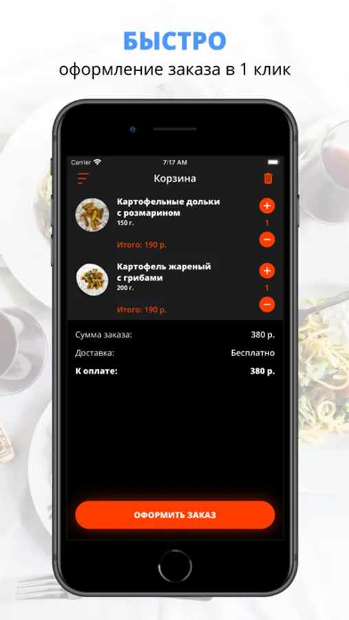 Скачивайте наше приложение, оформляйте заказ и наслаждайтесь любимой едой, где бы Вы ни были! Приятного аппетита!