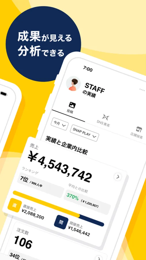 販売員のデジタル上の接客や業務をアプリで簡易化し、それらの個人売上や評価が全て可視化されます。