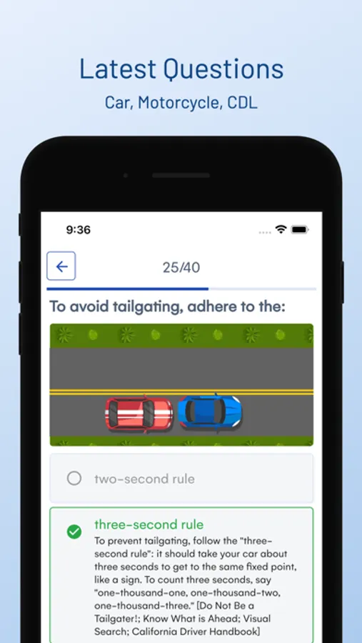 We constantly monitor the newest versions of your state's official driving handbook and traffic laws, and then update our test questions accordingly, so you can be sure that you're getting accurate and up-to-date information.