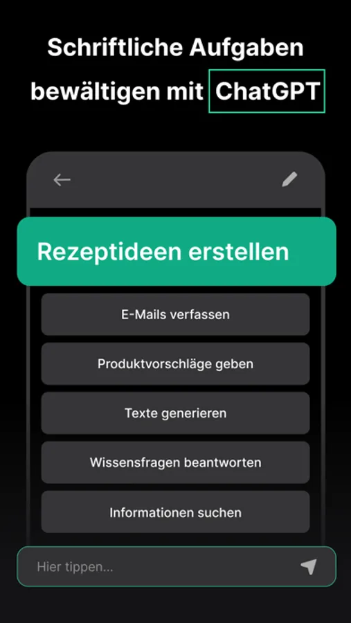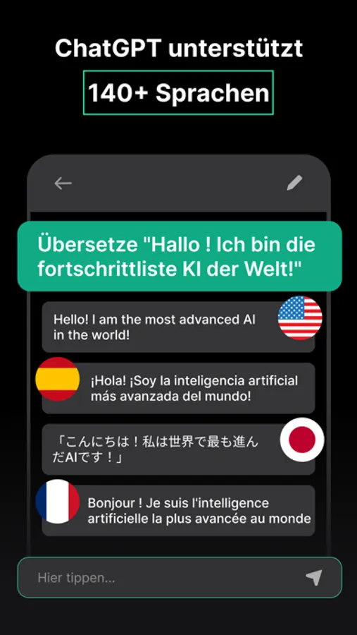 NEXA mit ChatGPT bietet dir eine Vielzahl von Möglichkeiten, um mit der KI zu interagieren. Egal, ob du lieber per Texteingabe oder Spracheingabe kommunizierst, unser Chatbot steht dir jederzeit zur Verfügung. Einfach und bequem kannst du deine Fragen stellen, dich unterhalten lassen oder dich mit dem Chatbot über verschiedene Themen austauschen.