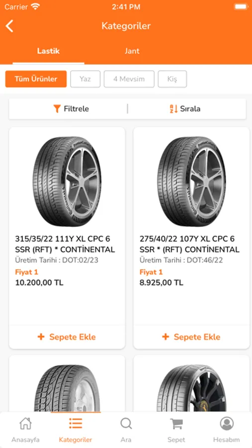 * Ürün kategorilerinde filtreleme yapabilirsiniz