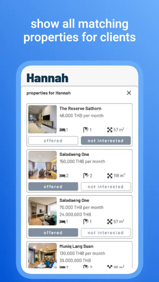 Define the search of your client and Agent Wizard will automatically show you all matching properties in your database.