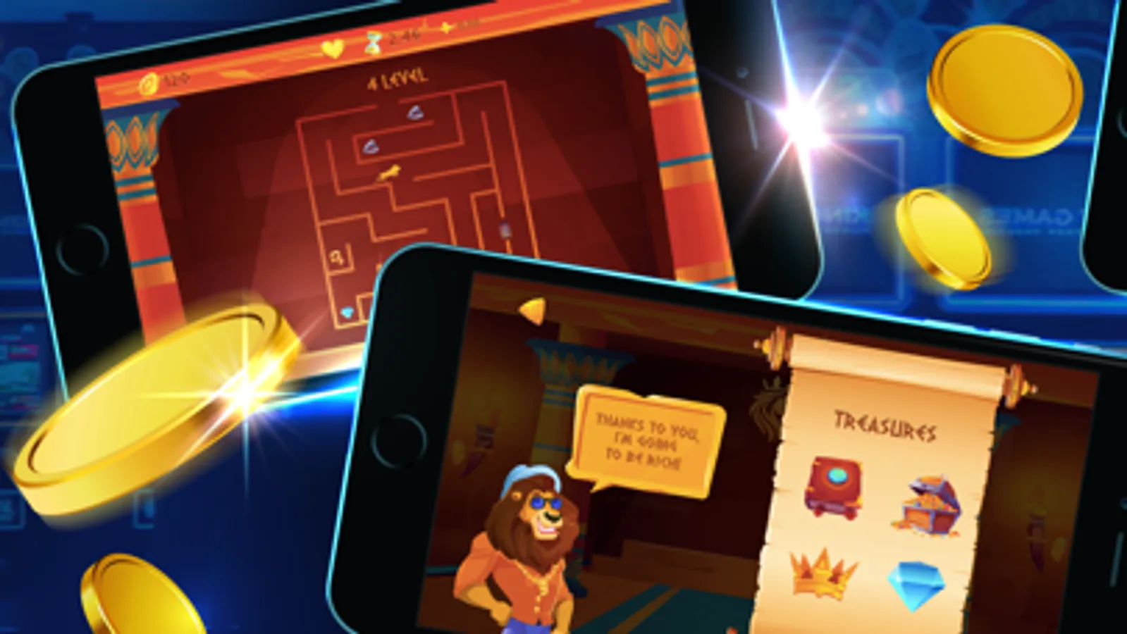 Il re della giungla non è un tipo normale: vuole di più! Ed è per questo che è in viaggio verso i labirinti, dove è nascosto il grande tesoro. Aiutalo nel suo cammino verso la ricchezza!