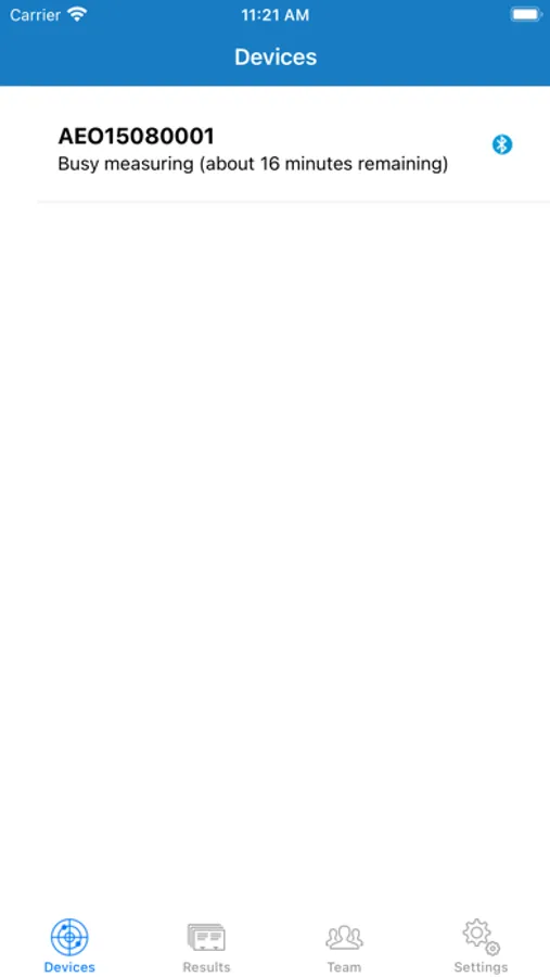The app uses a Bluetooth connection for communication with the Aeonose.