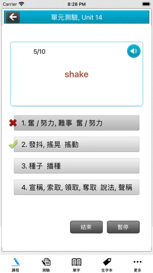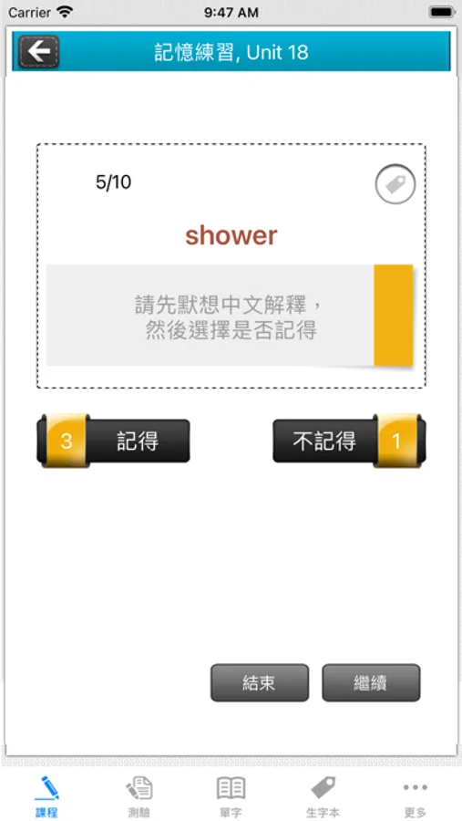 * 可自建使用者單字,並且作記憶和測驗練習。