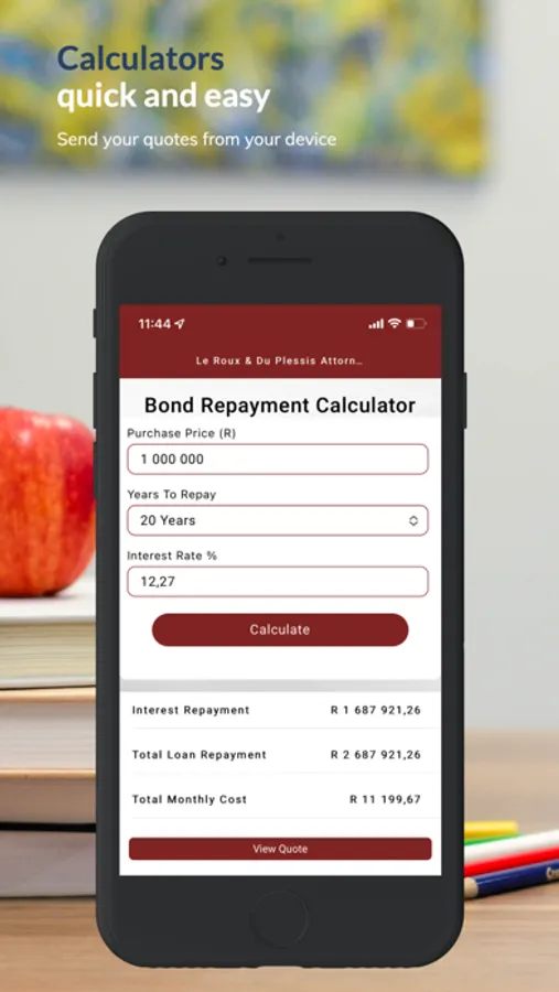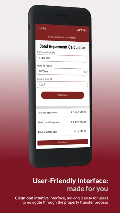 Le Roux Du Plessis Attorneys’ comprehensive mobile app is specifically designed to explain the process of transferring immovable properties in South Africa. It offers a user-friendly interface, detailed information on transfer & bond costs and a streamlined process to facilitate seamless property transactions.