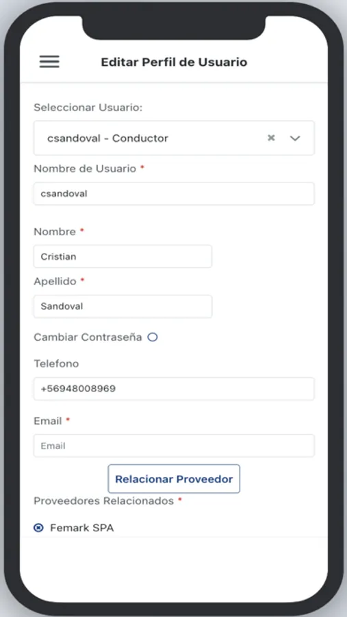- Vinculación de conductores con vehículos: La aplicación le permite al proveedor vincular a conductores con su flota de vehículos.
