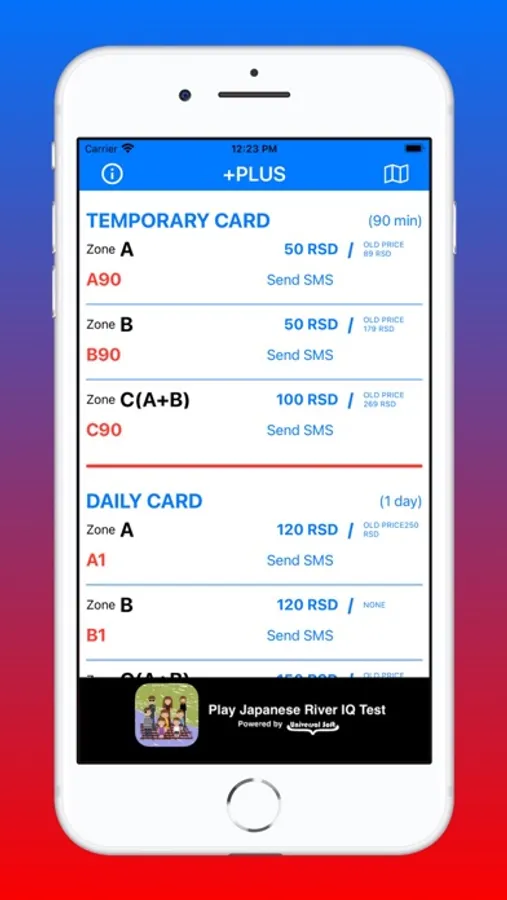Just open the application, select the zone you need and the duration of the ticket, and click "send SMS".