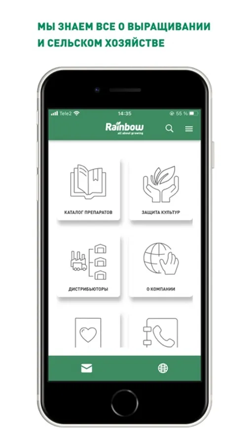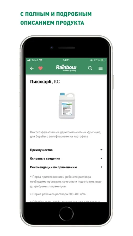 Приложение РЕЙНБОУ АГРО дает возможность найти необходимое решение в каталоге продукции компании.