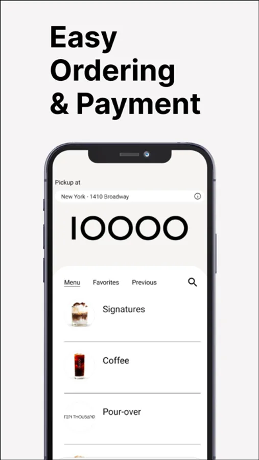 The 10,000 Coffee app allows customers to easily order ahead and receive great rewards.