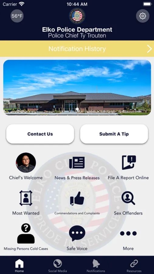 The Elko Police Department mobile application is an interactive app that will help improve our communication with the citizens. The purpose of this app is to improve our ability to communicate with our citizens. Information will include, but not be limited to Push Notifications, Submit a Tip, Weather Forecast, and more. Citizens may submit a crime tip directly through the app, as well as see and share social media posts. By empowering people through technology, the Elko Police Department will be able to better protect our community. This app is not meant to be used to report emergency situations. If you have an emergency please call 911.