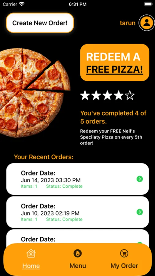 - The app incorporates a loyalty program where users can earn a free Pizza on every 5th order!