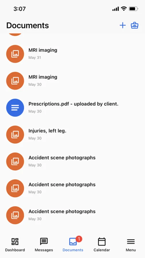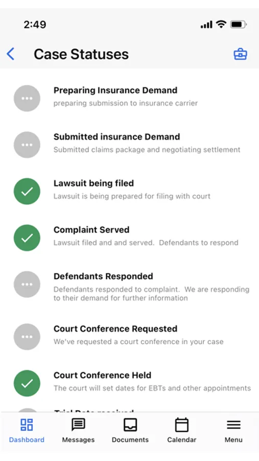 The Documents feature allows you to browse all your case documents and even upload new ones right from the app. This feature ensures we have all the necessary documentation to effectively work your case.