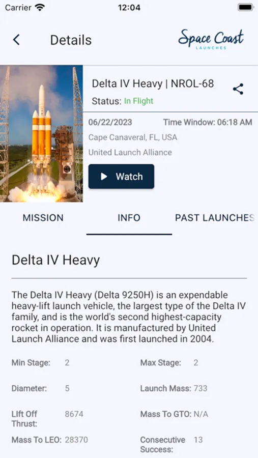 - Receive notifications for upcoming launches 24 hours and 5 minutes before countdown.
