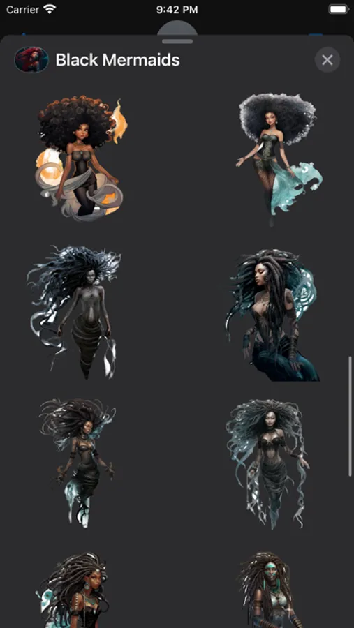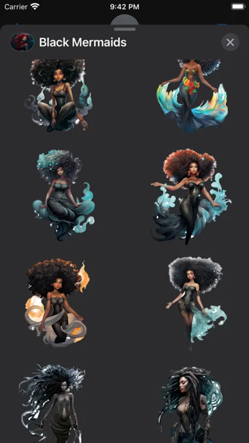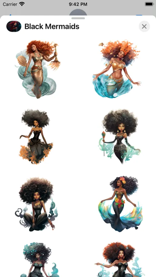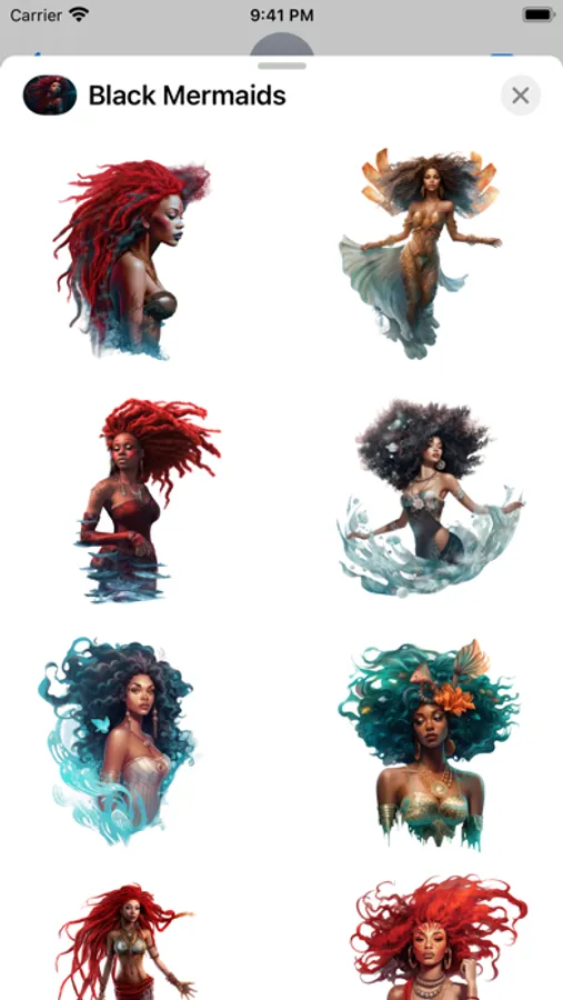 Submerge into the realm of Black Mermaids, where the splendor of black women shines brighter than sun-dappled sea. Download today and begin your magical odyssey, enhancing your iMessage dialogues with the iridescent beauty of our mermaid stickers.