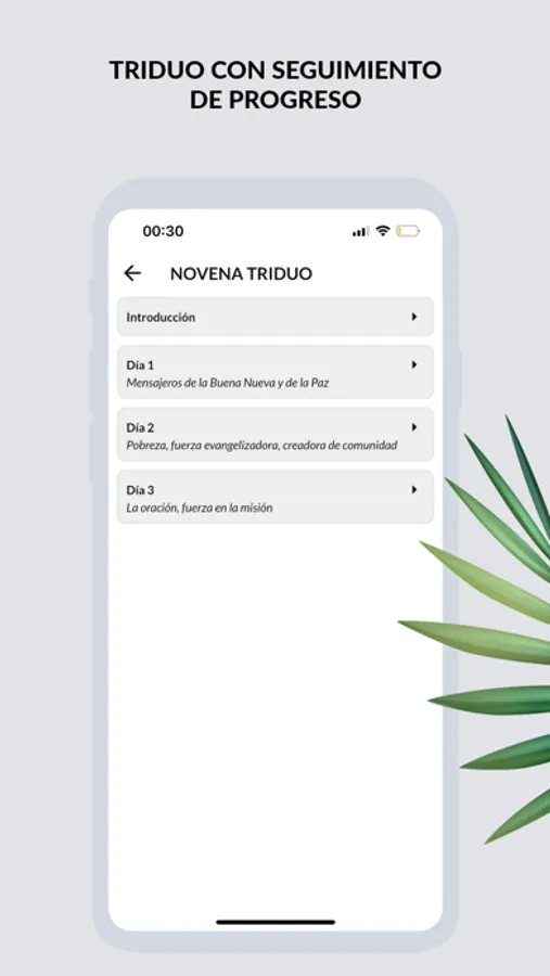 - control sobre el rezo del Triduo, la posibilidad de marcar los días rezados o reiniciar todo