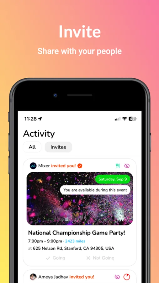 - Plan Your Own Events: From study sessions to weekend hangouts, getting everyone together is a breeze with Mixer.