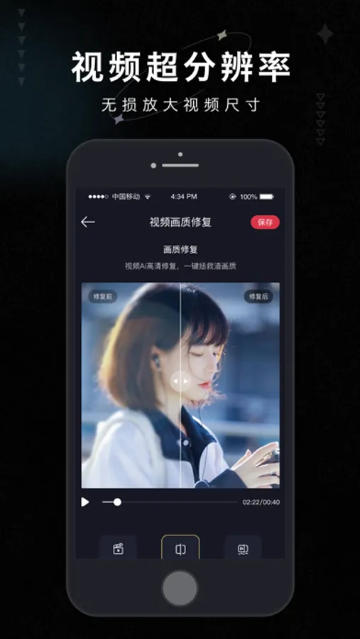 Master of image quality repair, AI intelligent one click repair of video image quality.