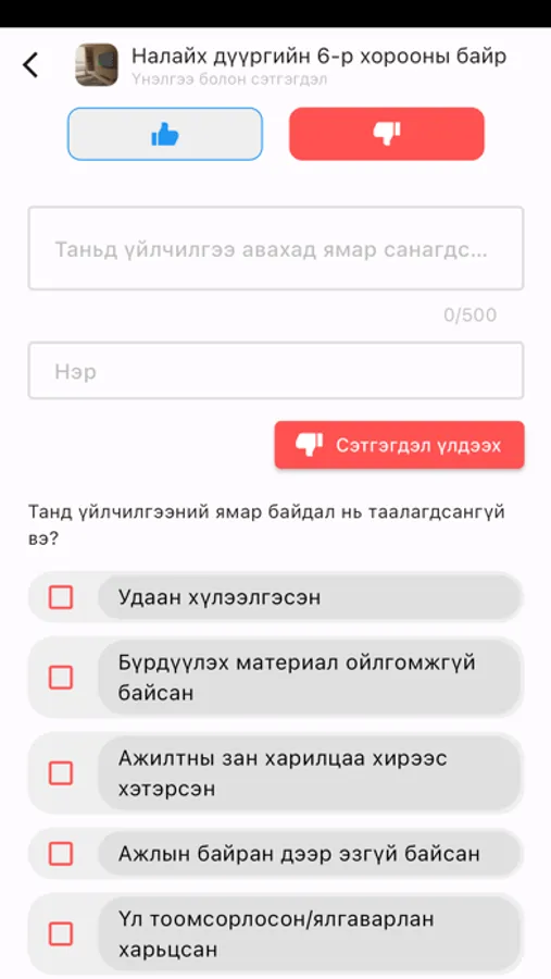 Хэрэглэгч та энэхүү аппликэйшнийг ашиглан төрийн байгууллагуудын үйлчилгээнд үнэлгээ өгөх замаар олон нийтийн хяналтыг хэрэгжүүлэхэд өөрийн хувь нэмрээ оруулах боломжтой юм.