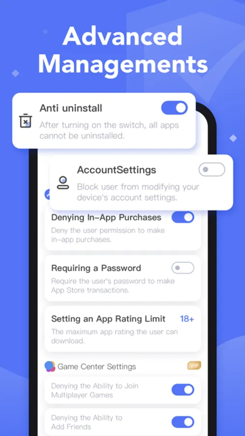 Account and password management is made simple and secure with App Locker. Safely store and manage your important accounts and passwords within the app, knowing that they are shielded from unauthorized changes and access. Your valuable credentials remain protected, allowing you to navigate the digital landscape with confidence.