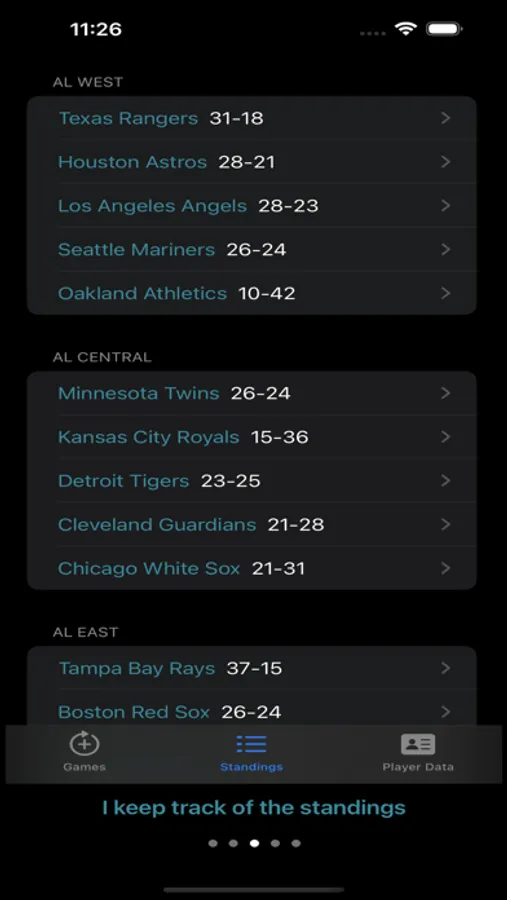 Easy to use and clean design. Bonus features include player stats and team standings.